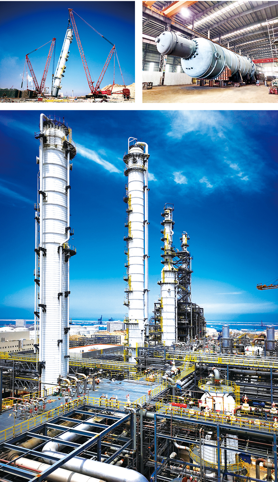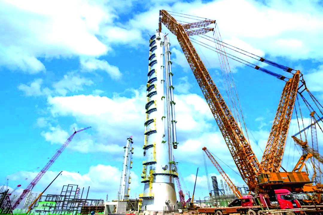 HLHI has supplied three large pieces of equipment for the project, including the propane separation tower, the propane separation tower and the de-ethane gas stripping tower for the propane dehydrogenation (PDH) units, among which the largest propane separation tower has a diameter of 10 meters, a length of 108 meters and a weight of 1400 tons.